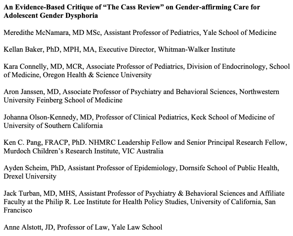 Leveraging the name and credibility of Yale University (a known hive of knowledge and therefore suspect), the McNamara et al. paper has been deeply upsetting to those of us who prefer our evidence filtered through moral panic and misused systematic reviews. Rather than engage in rigorous debate, we’ve assembled a helpful list of articles that repeat the same core complaint: how dare a group of international experts call out the ideological misuse of the Cass Review?
